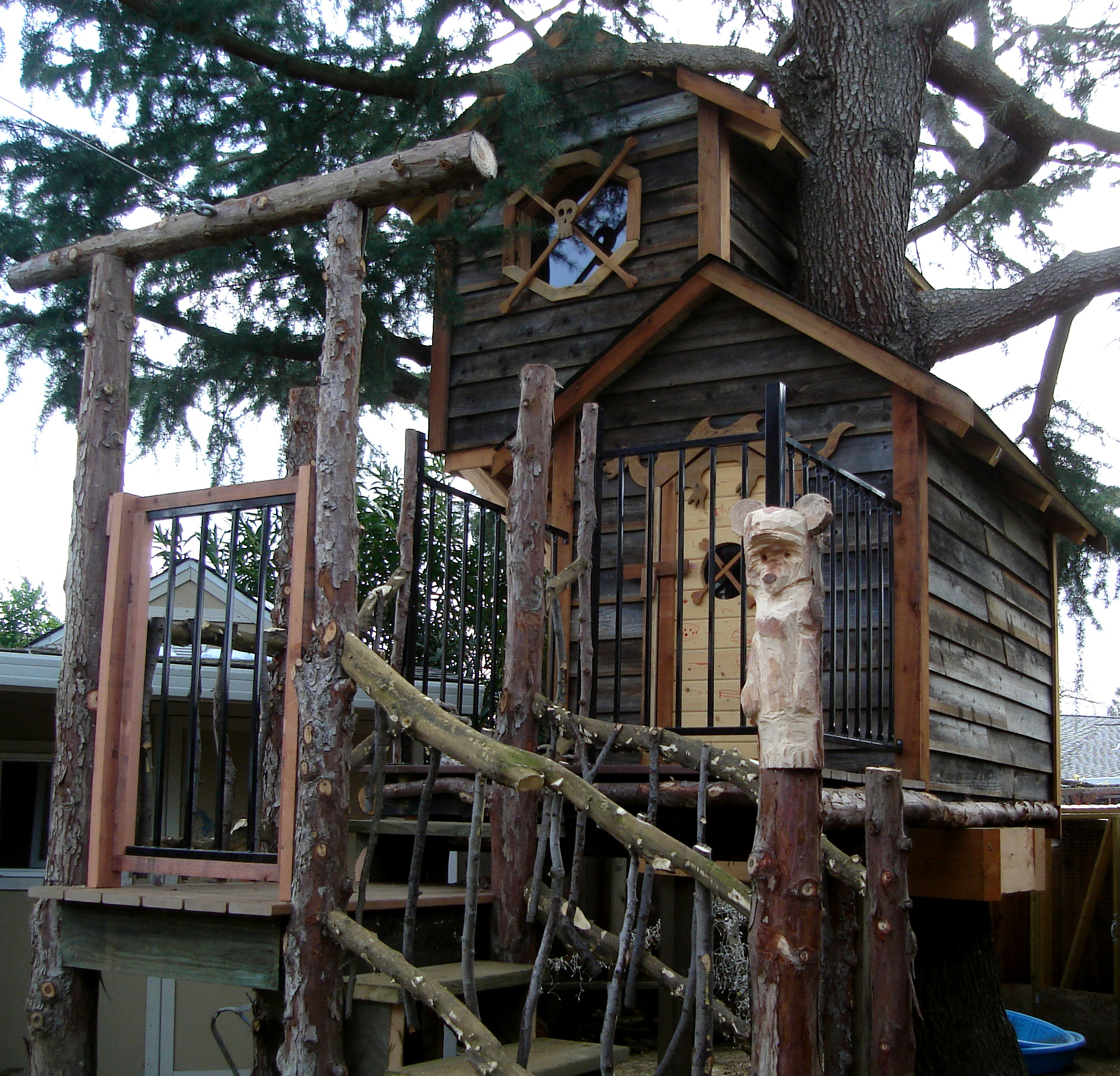 Tree houses put the fun in functional outdoor structures. We’ve built custom tree houses worthy of guest houses, offices, and of course ultimate play domains. Whether your tree house requires power, cable, zip lines, slides, or safety railing for little ones, we can build it to your style. Here are photos of recent tree house projects. Contact us for a free estimate and design for your tree house.